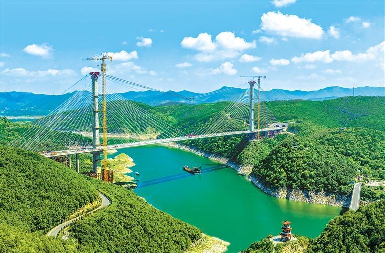 8月16日,河南渑淅(渑池—淅川)高速公路丹江小三峡特大桥桥面合龙。高速公路通车后,将有力促进河南、湖北、陕西三省之间的人员和经贸往来,进一步推动区域经济发展。崔培林摄(中经视觉)