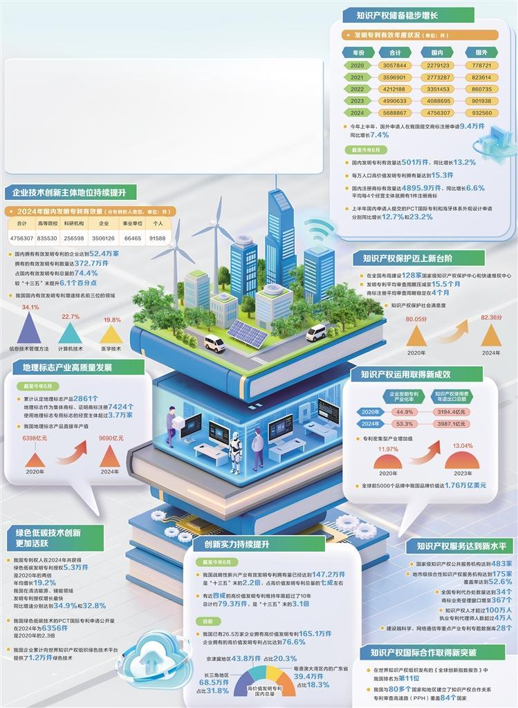 “十四五”时期,我国知识产权事业在稳进中提质、在创新中突破,多项核心指标提前达成,为知识产权强国建设夯实根基、拓宽路径。