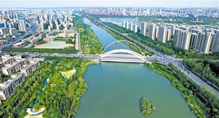 8月17日,宁夏回族自治区银川市典农河畔,草木繁盛,风景优美。近年来,银川市坚持“生态立市”发展战略,打造亲水近水乐水公共空间,谱好河畅、水清、岸绿、景美“四部曲”,提升市民获得感、幸福感。周序鹏摄(中经视觉)