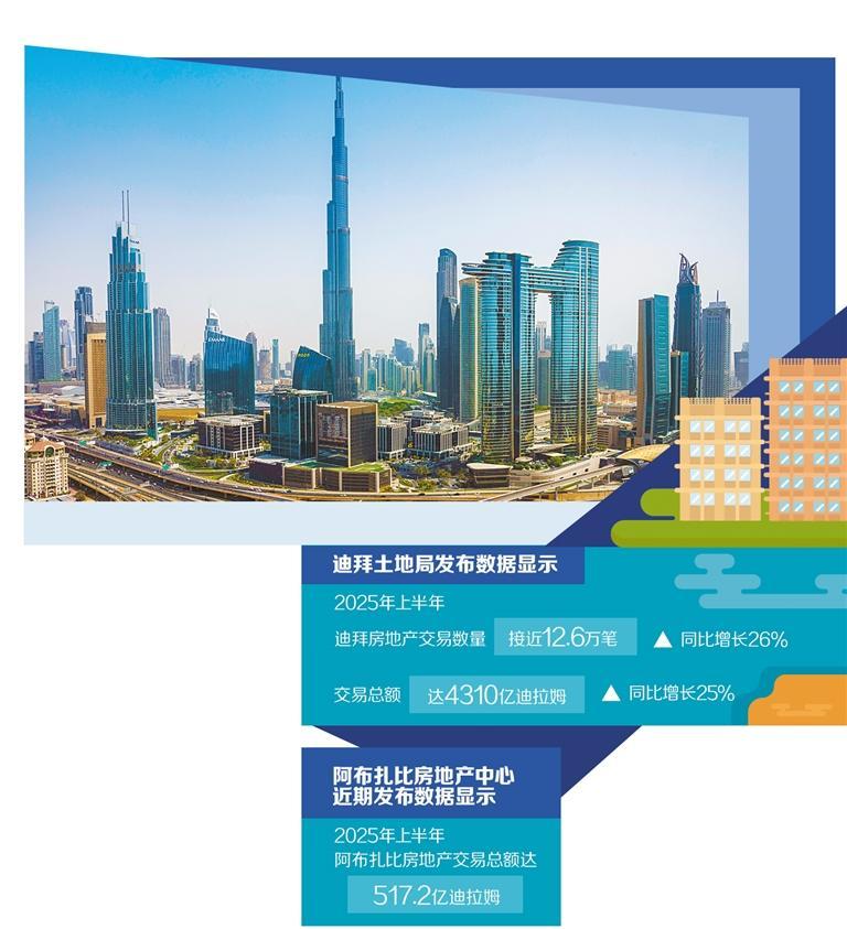 自2021年年初以来,迪拜的房地产市场已持续上涨50多个月。根据迪拜土地局发布的数据,2025年上半年,迪拜房地产交易数量接近12.6万笔,同比增长26%;交易总额达4310亿迪拉姆,同比增长25%,创下该市历史上最强的年中业绩。同期,包括销售、租赁和其他交易类型的房地产交易总数超过130万笔,反映出房地产各个领域持续增长。2025年上半年,迪拜房地产投资市场吸引近9.5万名投资者,同比增长26%,共完成超过11.8万笔投资,总金额达3260亿迪拉姆,同比增长39%。其中,新投资者数量达到5.9万人,同比增长22%,投资总额为1570亿迪拉姆,同比增长40%。按国别划分,来自海湾阿拉伯国家合作委员会(GCC)国家投资者的投资额为225.6亿迪拉姆,GCC之外阿拉伯国家投资者的投资额为284亿迪拉姆。这些数字凸显了迪拜持续吸引全球资本的能力。