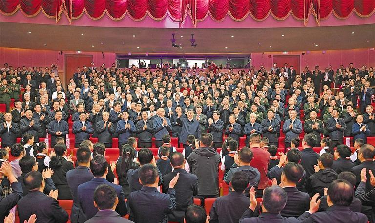 王沪宁、蔡奇、李干杰、何立峰、张国清、王小洪、洛桑江村、胡春华和张升民,在西藏工作过的老同志,以及中央和国家机关有关部门负责同志、中央代表团全体成员一同观看演出。