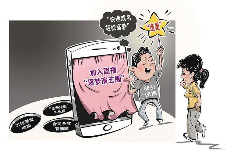 近段时间,一种由多名主播参与的团播走红直播间,受到许多网友喜爱。不少国有文艺院团账号积极参与,其中不乏国风、互动式剧情舞蹈等艺术创新。但随着大量机构涌入这一赛道,泥沙俱下的问题开始显现。不少机构看到团播火了,在社交平台发布各种引流帖,用“快速成名、轻松高薪”等话术渲染主播的职业前景,吸引对娱乐行业抱有幻想的年轻人入局。然而,所谓的“高薪”背后藏着诸多陷阱,比如工作强度畸高、说好的“免费培训”实则不免费、合同条款有猫腻甚至含霸王条款等。在激烈的市场竞争下,一些团播公司想方设法钻空子、博出位。杜绝团播乱象,既需要平台从严治理,也要完善法律法规,严管背后机构,避免年轻人深陷“造星”陷阱。