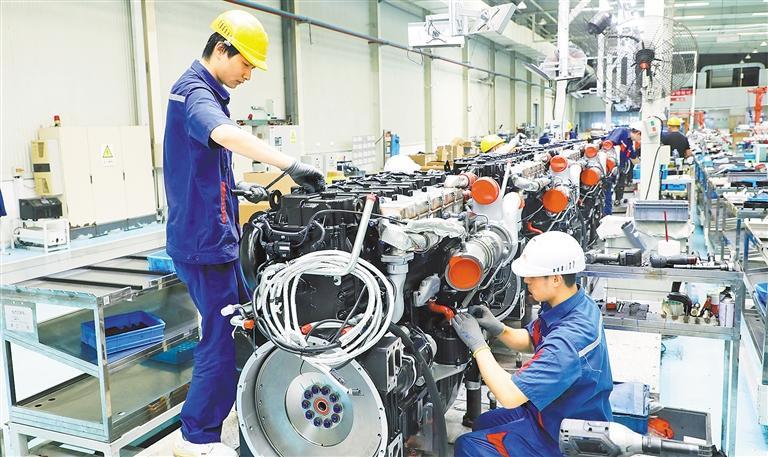 位于安徽芜湖三山经济开发区的玉柴联合动力股份有限公司内,工人在天然气发动机生产线上作业。近年来,公司积极推进绿色工厂建设,打造具有核心竞争力的动力系统产品,销往多个国家和地区。