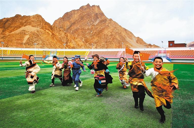 阿里陕西实验学校学生在操场上奔跑,该学校是陕西在阿里地区援建的首所标准化学校。截至2024年,西藏共有各级各类学校3618所,在校学生总数97万人(摄于2023年6月)。