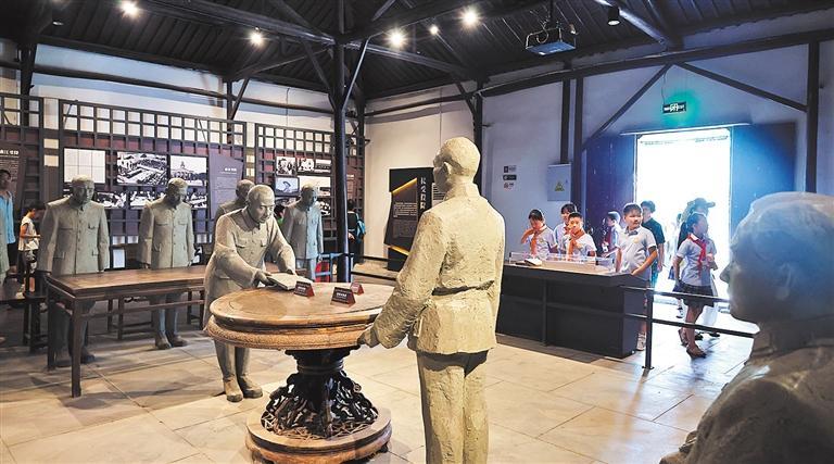 众志成城,曙光终至。宋殿受降,这一浙江人民铭记的历史时刻,被雕塑定格在位于杭州市富阳区的受降纪念馆受降厅内。“千山万壑,铜壁铁墙!”前来参观的退休干部队伍里,90岁的吴玄言老人带头唱起了歌:“敌人从哪里进攻,我们就要它在哪里灭亡!”他边走边唱,其他人也跟着唱起来,一时间纪念馆里歌声回荡。“我记得那个宣布胜利的日子。”老人眼里闪着激动的光,80年前的场景恍若昨日。“当时在课堂里,听到胜利了,我们都兴奋地跳了起来。”