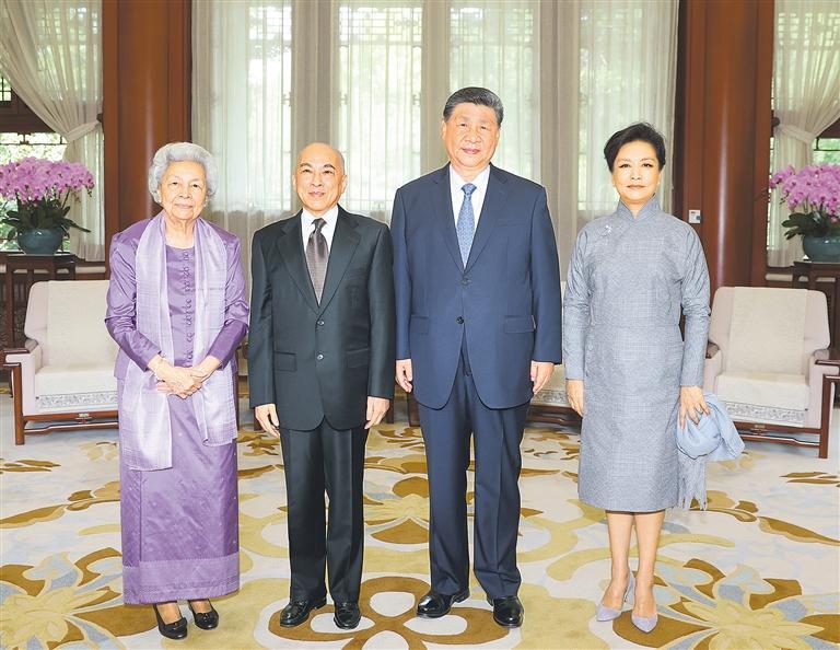 习近平夫妇会见柬埔寨国王西哈莫尼和太后莫尼列
