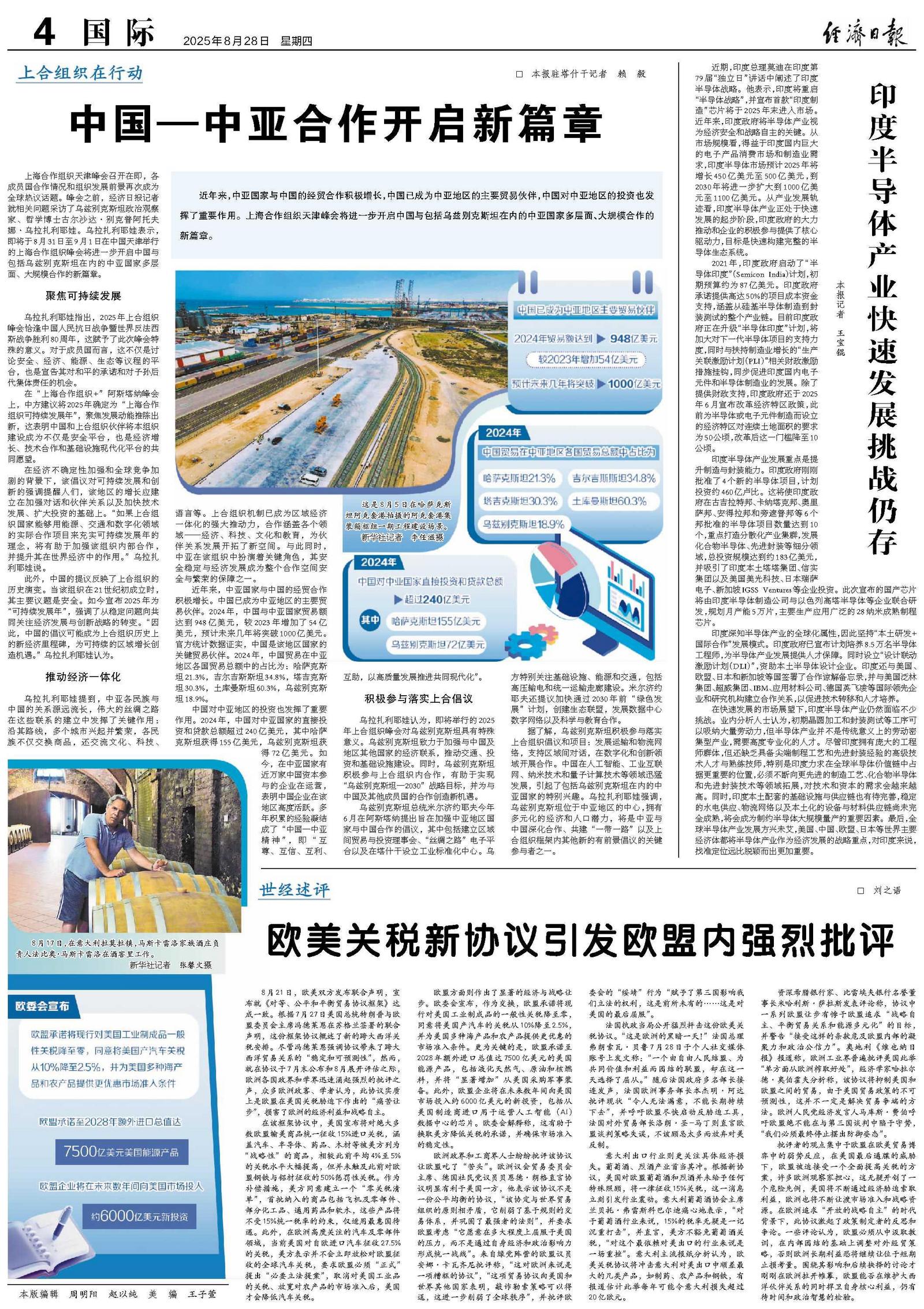 此外,中国的提议反映了上合组织的历史演变。当该组织在21世纪初成立时,其主要议题是安全。如今宣布2025年为“可持续发展年”,强调了从稳定问题向共同关注经济发展与创新战略的转变。“因此,中国的倡议可能成为上合组织历史上的新经济里程碑,为可持续的区域增长创造机遇。”乌拉扎利耶娃认为。