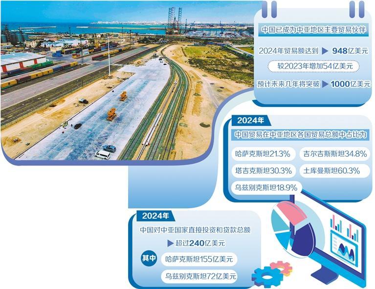 近年来,中亚国家与中国的经贸合作积极增长。中国已成为中亚地区的主要贸易伙伴。2024年,中国与中亚国家贸易额达到948亿美元,较2023年增加了54亿美元,预计未来几年将突破1000亿美元。官方统计数据证实,中国是该地区国家的关键贸易伙伴。2024年,中国贸易在中亚地区各国贸易总额中的占比为:哈萨克斯坦21.3%,吉尔吉斯斯坦34.8%,塔吉克斯坦30.3%,土库曼斯坦60.3%,乌兹别克斯坦18.9%。