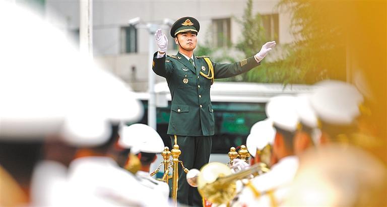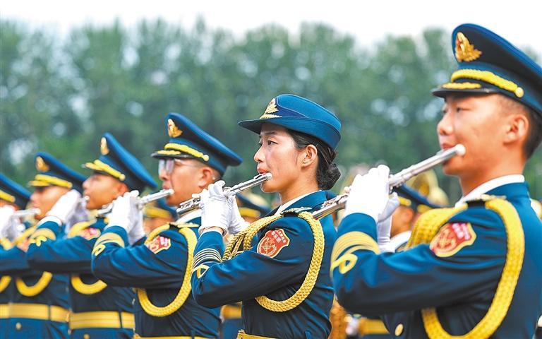 8月12日,担负阅兵演奏任务的联合军乐团在训练。军乐团成员专业背景多元,涉及多个领域,其中不乏知名学府的博士、硕士。