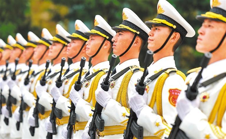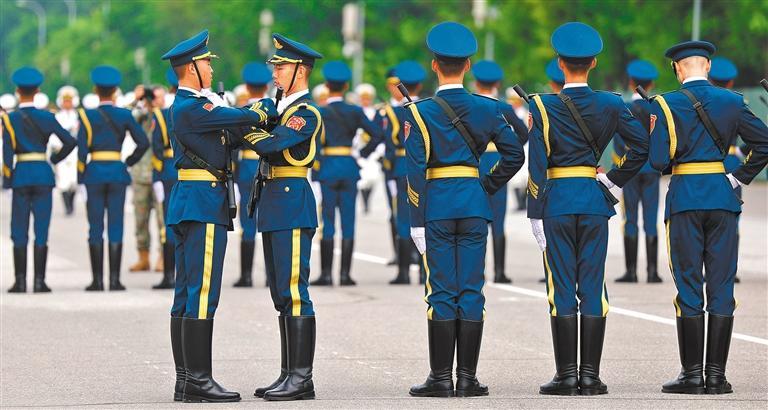 8月12日,仪仗方队在训练。官兵们目光坚定,军姿挺拔。