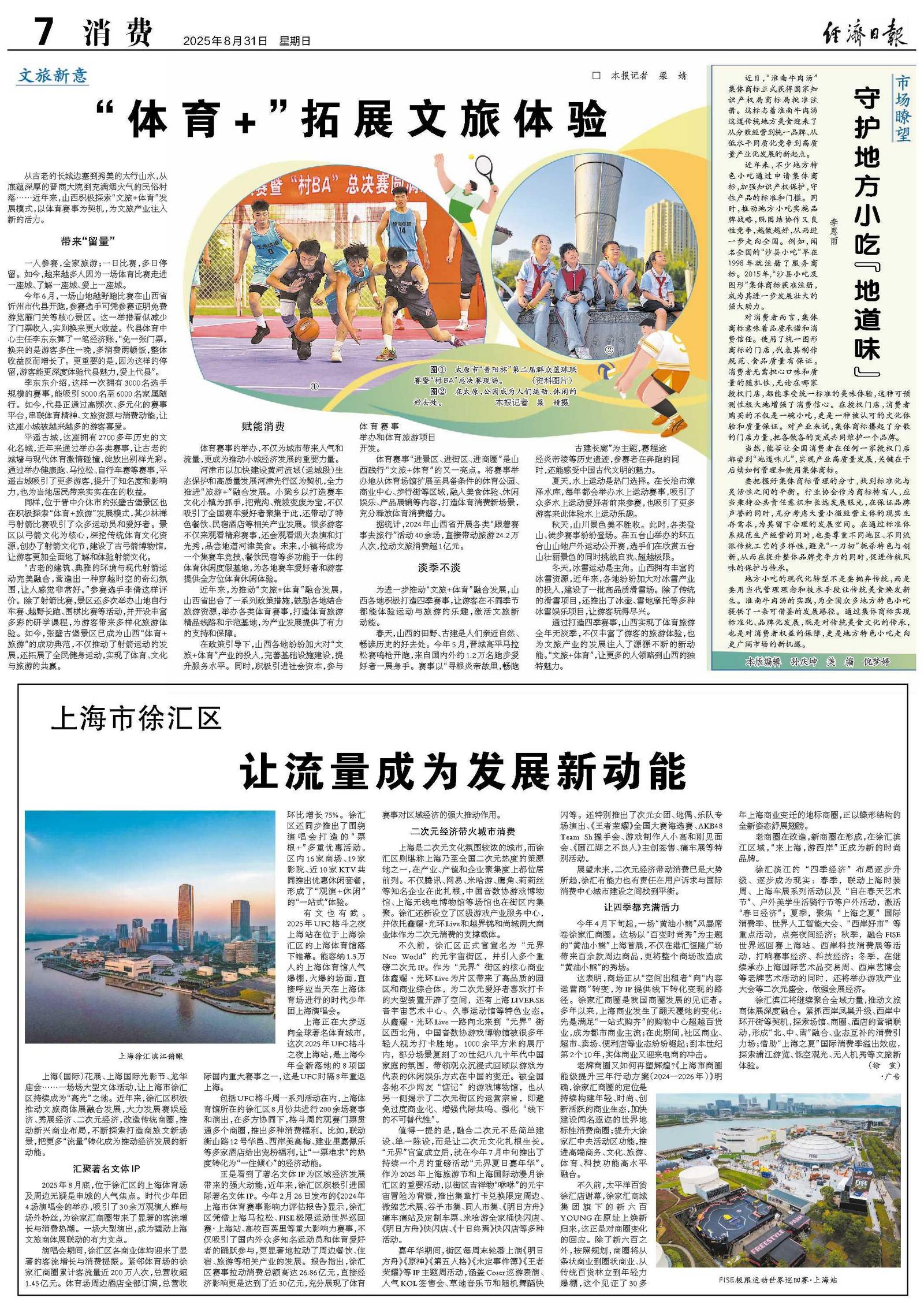 徐汇滨江将继续聚合全域力量,推动文旅商体展深度融合。紧抓西岸凤巢升级、西岸中环开街等契机,探索场馆、商圈、酒店的营销联动,形成“北、中、南”融合、业态互补的消费引力场;借助“上海之夏”国际消费季溢出效应,探索浦江游览、低空观光、无人机秀等文旅新体验。(徐 宣)