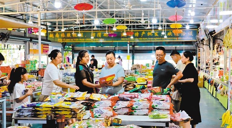8月2日,游客在麻栗坡县天保口岸超市选购特色商品。当地依托区位优势和特色资源,推出边境旅游线路,打造边境旅游目的地。石艺喏摄(中经视觉)