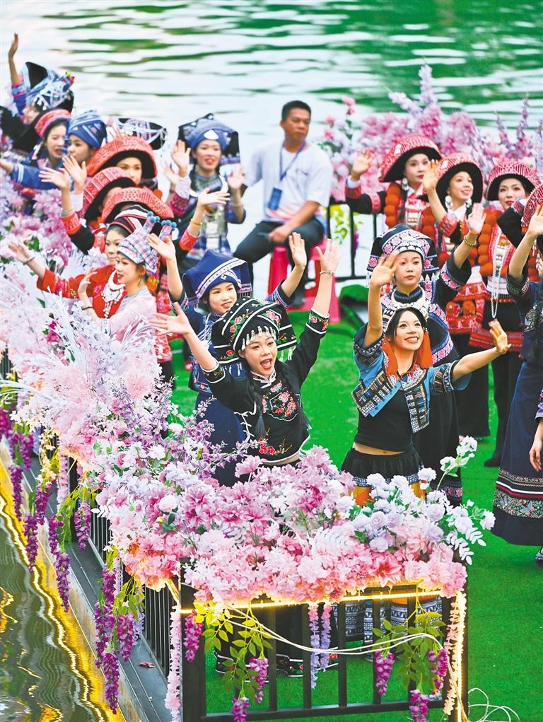 5月1日,富宁县“陇端·坡芽情歌”文化旅游活动启幕。当地挖掘坡芽歌书等非遗资源,丰富多彩的民族文化吸引游客前来体验。刘 瑞摄(中经视觉)