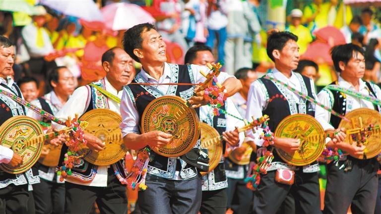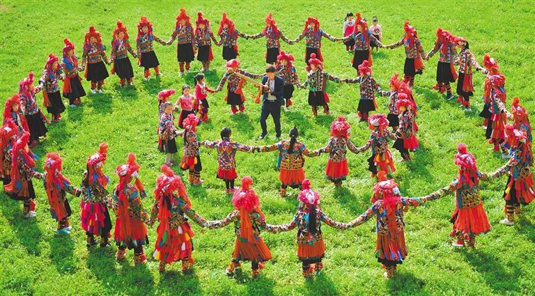 5月11日,西畴县鸡街乡海子村委会曼竜村小组,当地彝族群众在草坪上载歌载舞,庆祝民族节日“荞菜节”。熊平祥摄(中经视觉)