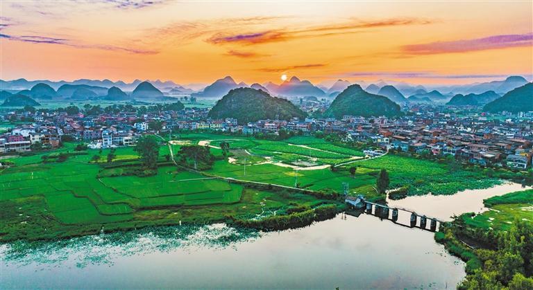 7月8日拍摄的丘北县普者黑喀斯特国家湿地公园。丘北县持续创新文旅新业态,丰富水上项目、夜景经济等,带动区域旅游发展。熊平祥摄(中经视觉)