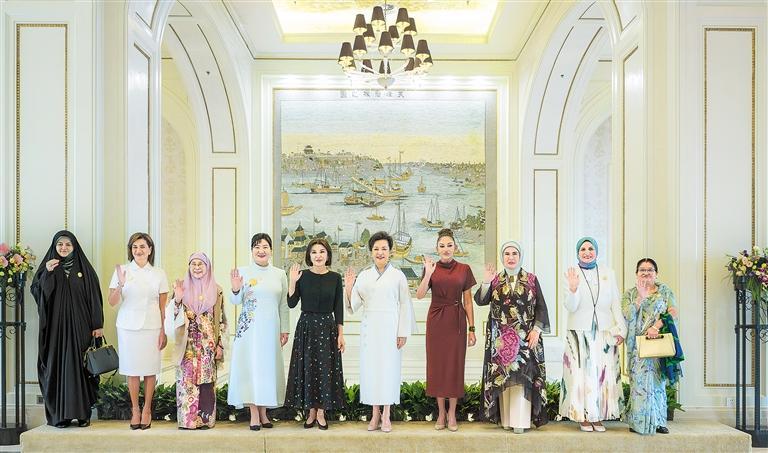乌兹别克斯坦总统夫人米尔济约耶娃、蒙古国总统夫人宝勒尔策策格、阿塞拜疆总统夫人阿利耶娃、土耳其总统夫人埃米奈、亚美尼亚总理夫人阿科皮扬、尼泊尔总理夫人沙基亚、埃及总理夫人哈赛贝拉、马来西亚总理夫人阿兹莎、伊朗总统女儿扎赫拉等参加上述活动。