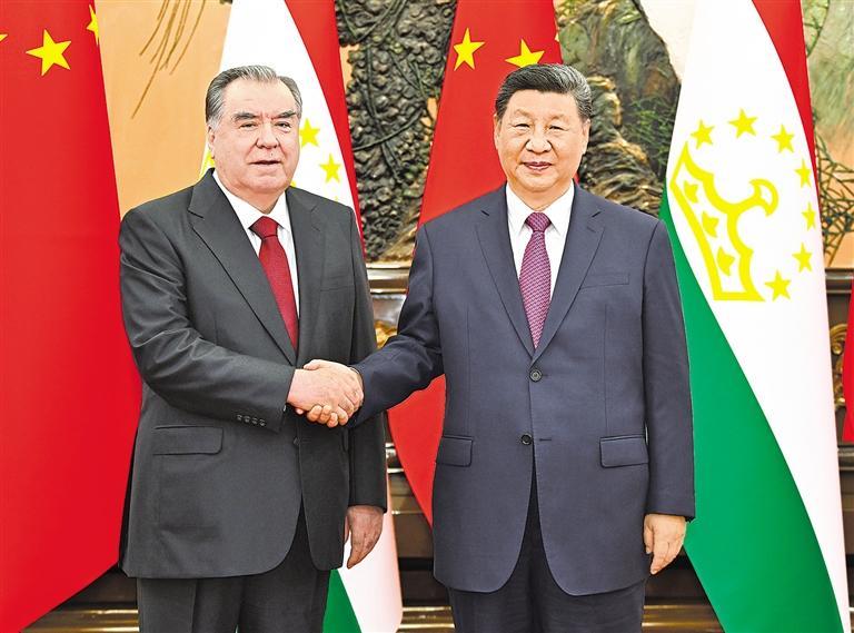 习近平指出,在我同拉赫蒙总统战略引领下,中塔合作不断取得新成果。中国已成为塔吉克斯坦第一大贸易伙伴,一系列合作项目取得新进展。作为全面战略合作伙伴,中方愿同塔方携手同心,构建中塔命运共同体。