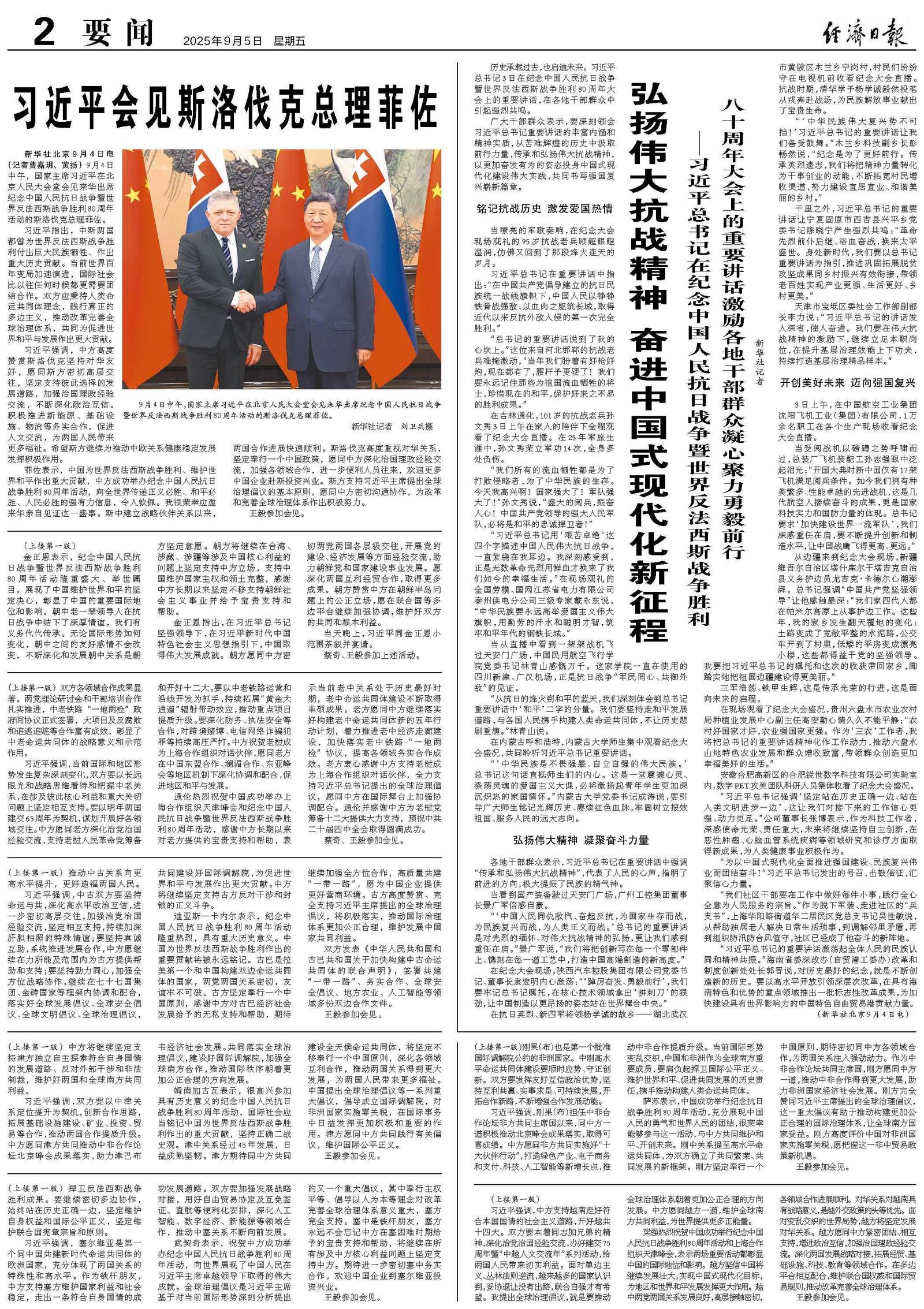 新华社北京9月4日电(记者曹嘉玥、黄扬)9月4日中午,国家主席习近平在北京人民大会堂会见来华出席纪念中国人民抗日战争暨世界反法西斯战争胜利80周年活动的刚果(布)总统萨苏。两国元首宣布将双边关系定位提升为中刚高水平命运共同体。