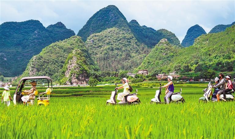 8月9日,游客在贵州省黔西南州兴义市万峰林景区游玩。该市大力发展生态乡村旅游,将资源优势转化为发展优势。