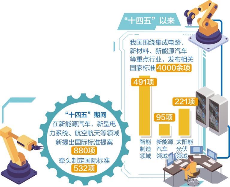 国家市场监督管理总局数据显示,“十四五”以来,我国围绕集成电路、新材料、新能源汽车、机器人、航空航天装备等先进制造业行业,已发布相关国家标准4000余项,在助力现代化产业体系建设、保障重点产业链供应链安全稳定等方面发挥了重要作用。