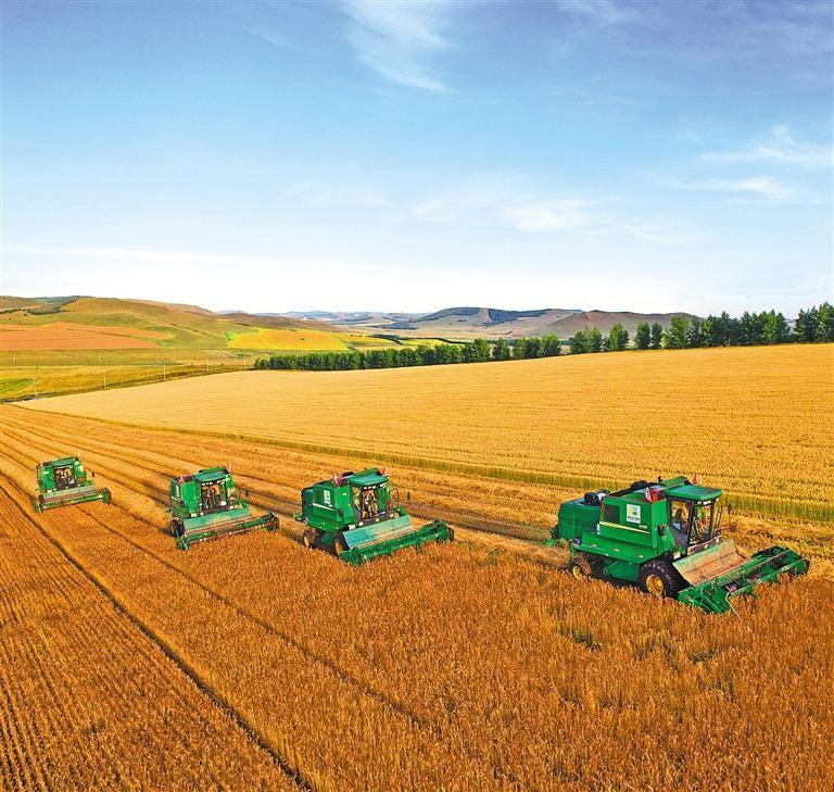 近日,内蒙古呼伦贝尔农垦三河农牧场公司农机驾驶员在田间联合收获小麦。凭借多元种植布局、科技精准赋能与订单模式引领,当地广袤的田野孕育出丰硕的成果,彰显出现代农业的强劲发展活力。谭玉娇摄(中经视觉)