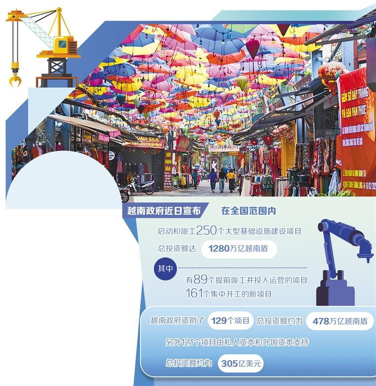 近日,越南政府宣布在全国范围内启动和竣工250个大型基础设施建设项目,总投资额高达1280万亿越南盾(约合500亿美元)。这是越南政府为实现年度经济增长目标、推动经济转型采取的关键战略,被视为拉开了未来10年至20年经济发展和社会现代化的序幕。越南总理范明政在启动仪式上表示,这些项目将为越南国内生产总值(GDP)贡献约13%,并从根本上改变国家战略基础设施的现状。