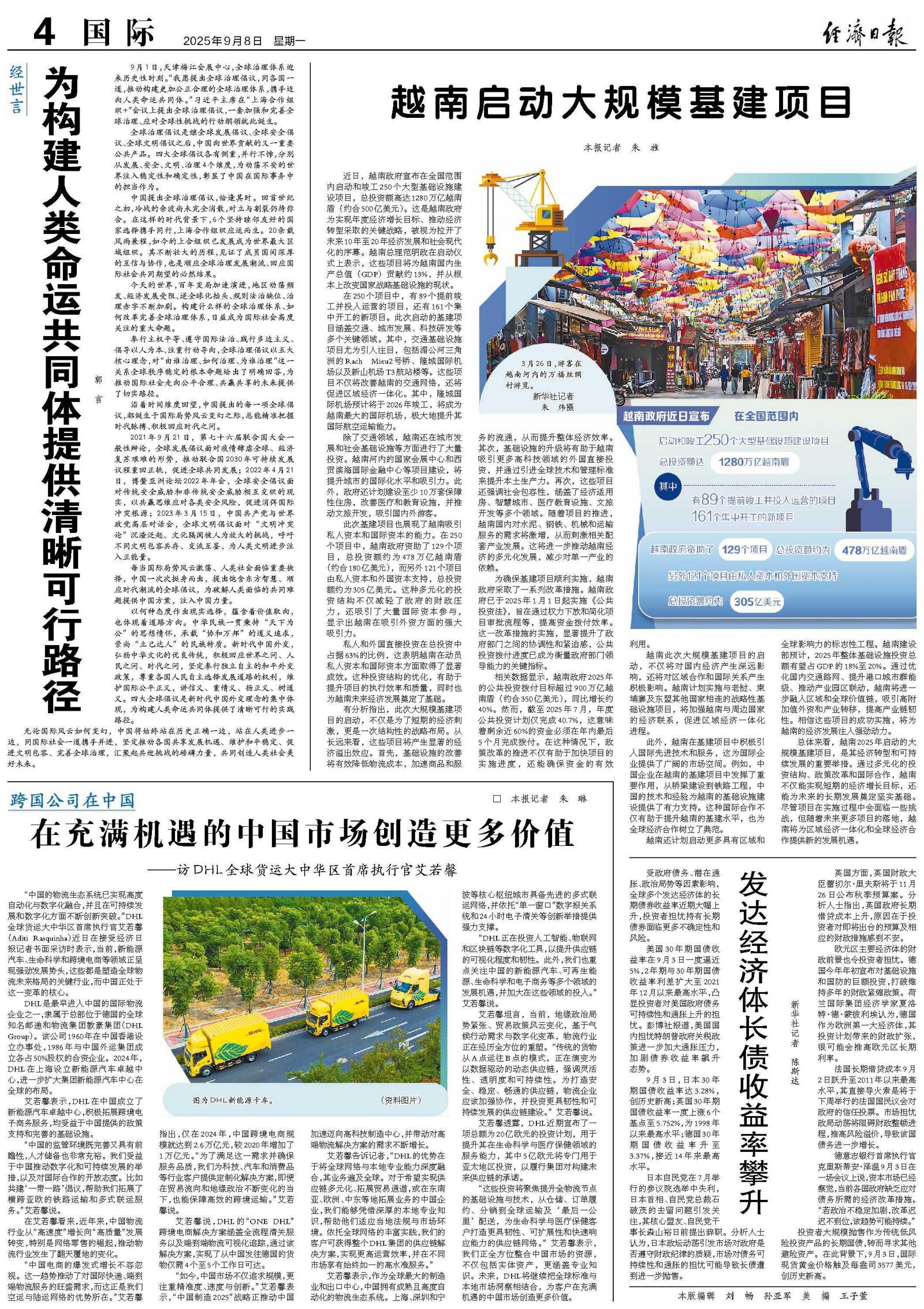 越南还计划启动更多具有区域和全球影响力的标志性工程。越南建设部预计,2025年整体基础设施投资总额有望占GDP的18%至20%。通过优化国内交通路网、提升港口城市群能级、推动产业园区联动,越南将进一步融入区域和全球价值链,吸引高附加值外资和产业转移,提高产业链韧性。相信这些项目的成功实施,将为越南的经济发展注入强劲动力。