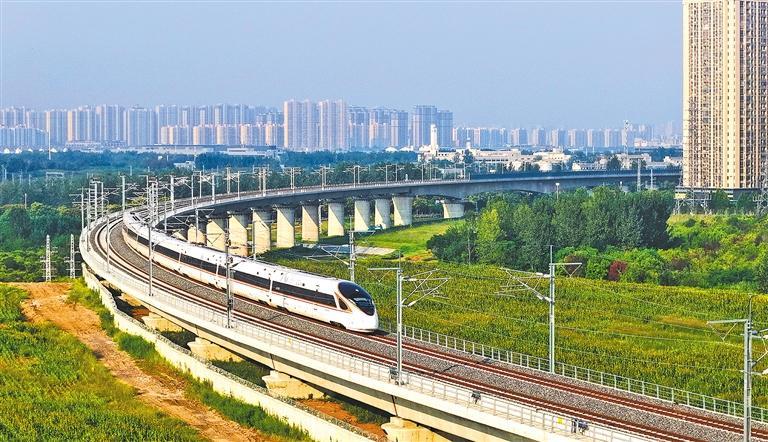 9月5日,安徽合肥一列试运行列车沿着合新铁路安徽段进行列车运行图参数测试。合新铁路起自安徽省合肥市,终至江苏省新沂市,线路全长约324公里。铁路建成后,将进一步完善国家高速铁路网布局,促进皖江城市带、淮河生态经济带协同发展。张 敏摄(中经视觉)