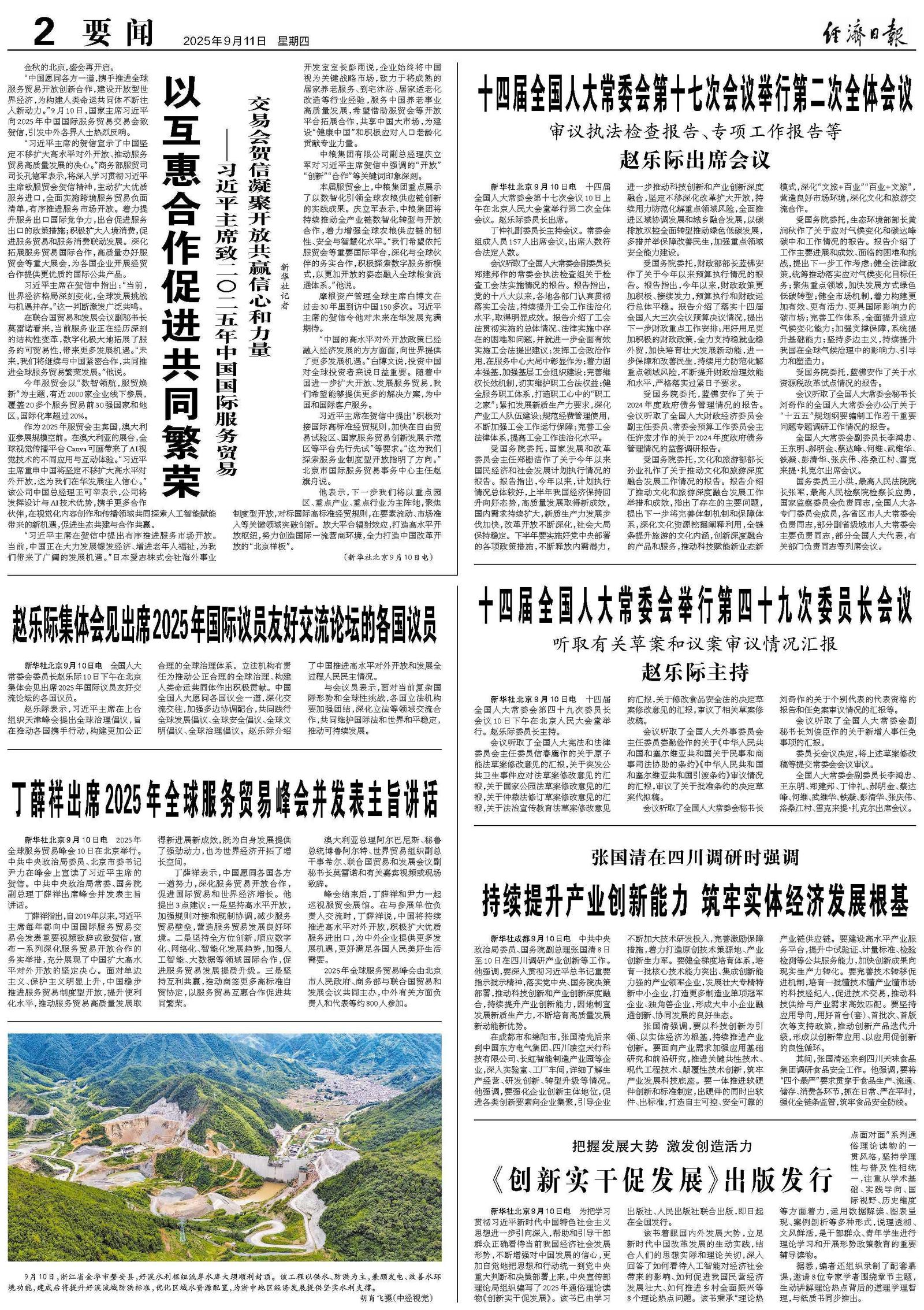 新华社北京9月10日电 十四届全国人大常委会第四十九次委员长会议10日下午在北京人民大会堂举行。赵乐际委员长主持。