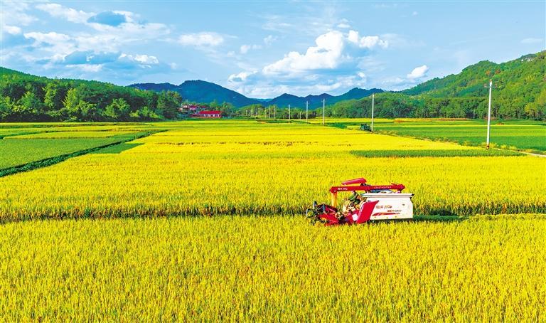 9月10日,在湖南省永州市,农民正驾驶农机收割中稻。当下,南方各省中稻迎来丰收季,各地抢抓农时收割中稻,确保颗粒归仓。蔡小平摄(中经视觉)