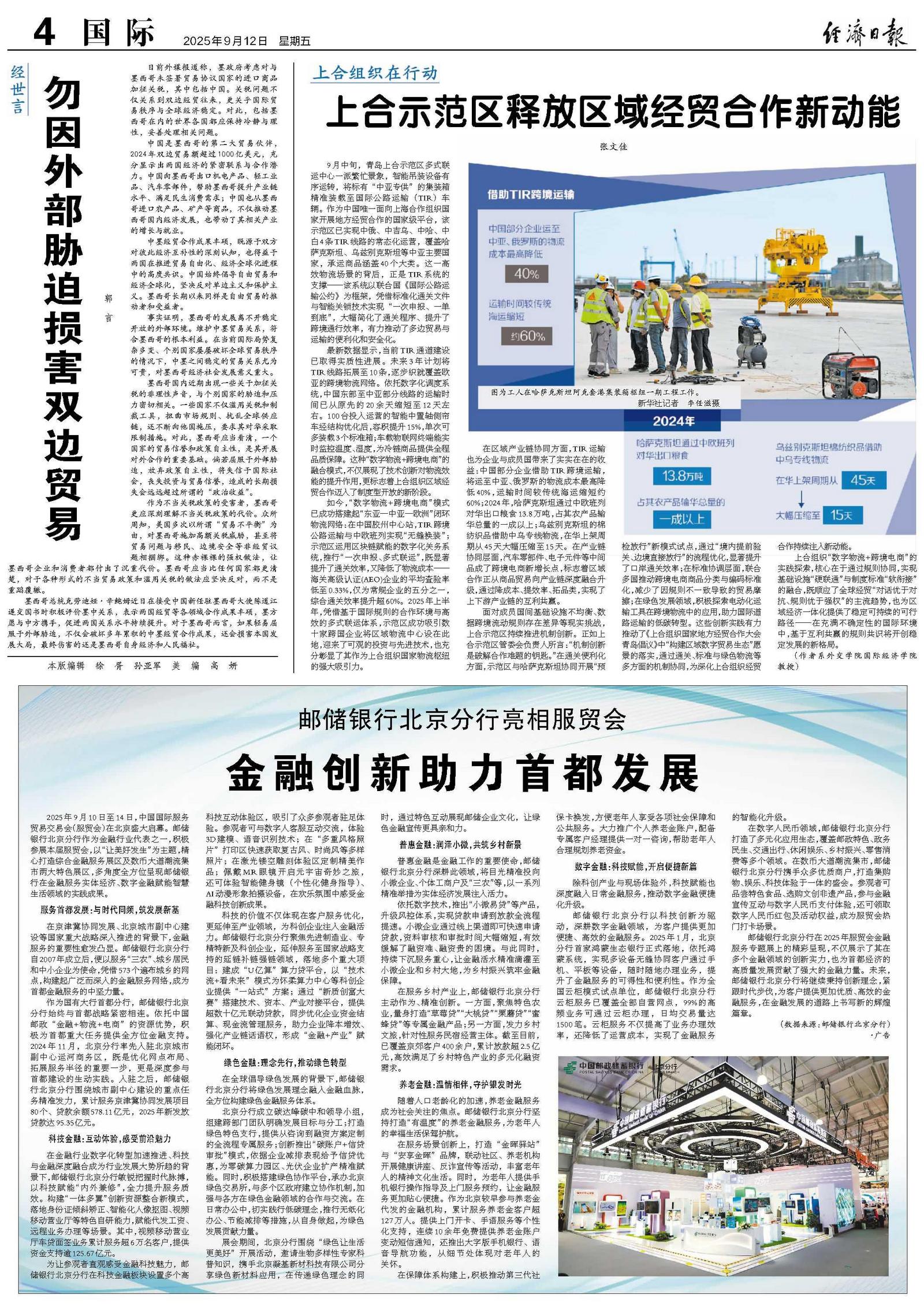 作为国有大行首都分行,邮储银行北京分行始终与首都战略紧密相连。依托中国邮政“金融+物流+电商”的资源优势,积极为首都重大任务提供全方位金融支持。2024年11月,北京分行率先入驻北京城市副中心运河商务区,既是优化网点布局、拓展服务半径的重要一步,更是深度参与首都建设的生动实践。入驻之后,邮储银行北京分行围绕城市副中心建设的重点任务精准发力,累计服务京津冀协同发展项目80个、贷款余额578.11亿元,2025年新发放贷款达95.35亿元。