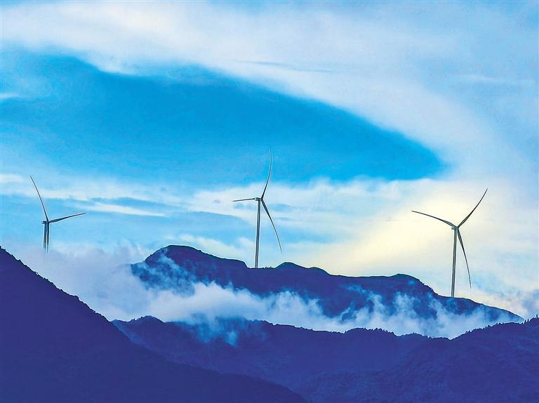 9月11日,江西省遂川县县城南边,群山之上一座座风电机组正缓缓运转,持续输送清洁绿色能源。近年来,当地依托资源优势,积极发展以风能为主的绿色能源产业,让绿色生“金”,助力生态、经济发展。肖远泮摄(中经视觉)
