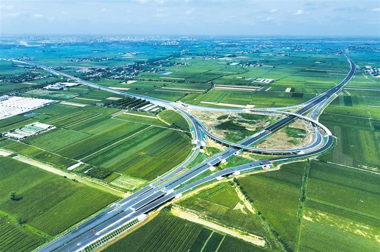 9月10日,安徽省蒙城县境内亳蒙高速二期板桥集枢纽建设现场,工人正在加紧施工。亳蒙高速计划于2025年12月建成,通车后将进一步完善安徽省高速公路网络布局,加强皖北地区与长三角地区的经济联系。胡卫国摄(中经视觉)