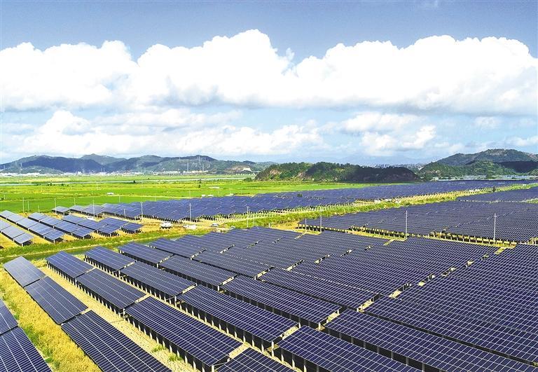 秋阳高照,浙江省玉环市漩门三期滩涂地上,光伏方阵依次排列,碧绿农田整齐成方。近年来,当地将6万多亩滩涂逐步开发成农业区块、工业区块、城市区域,提高土地利用效益,推动实现“赋能融合,聚力共赢”发展目标。吴达夫摄(中经视觉)
