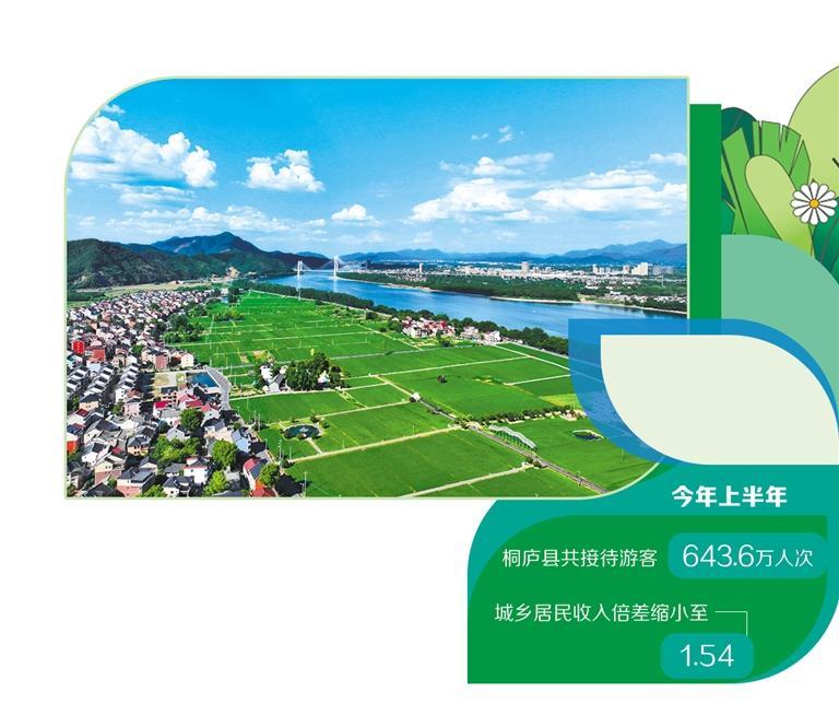 美丽生“金”,生态富民。当下,以文旅资源催生的“美丽经济”已成为桐庐高质量发展的鲜明底色。今年上半年,桐庐县共接待游客643.6万人次,城乡居民收入倍差缩小至1.54,一幅人与自然和谐相处、自然资源价值有效转化的新图景,在富春江畔缓缓展开。