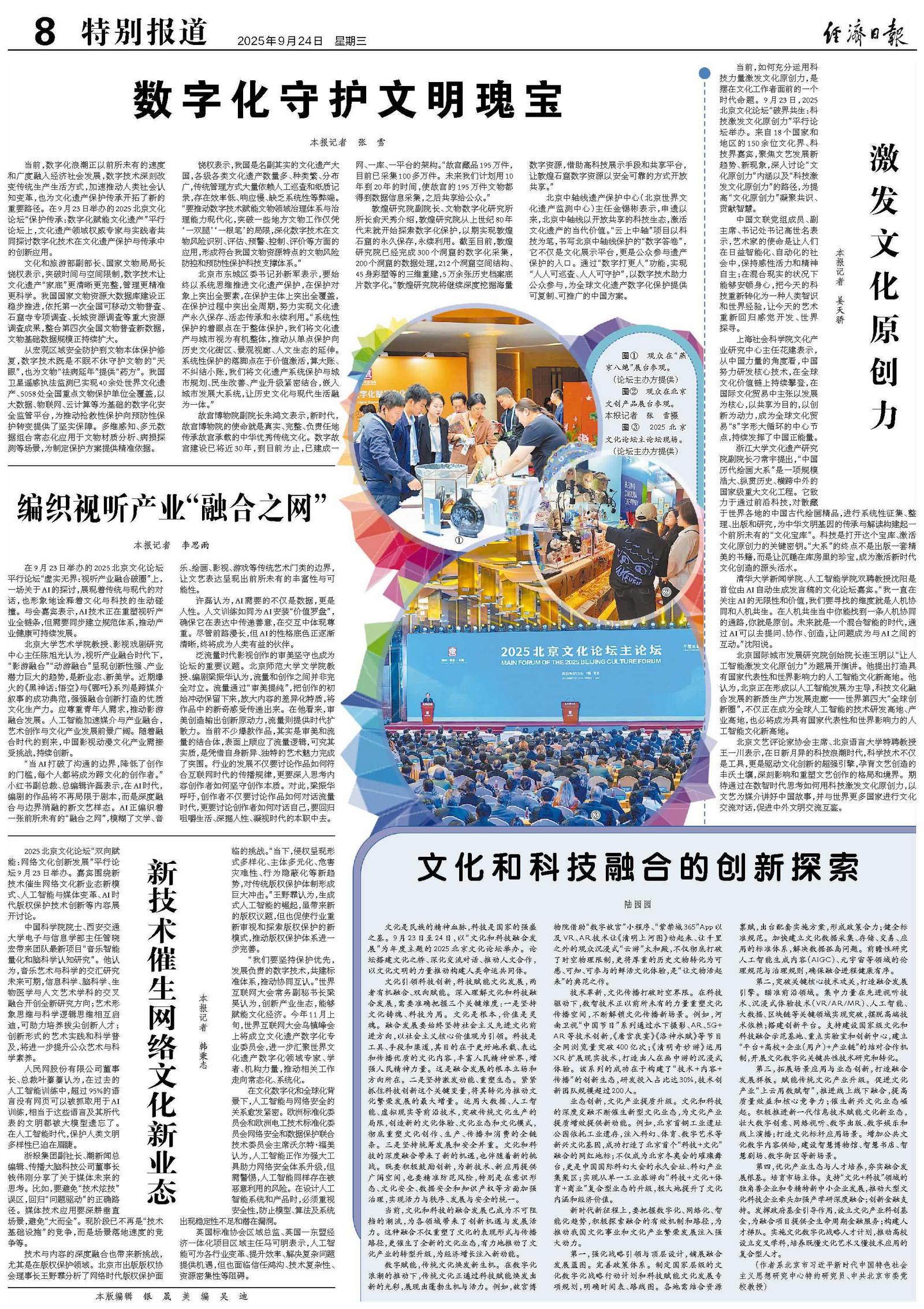 文化是民族的精神血脉,科技是国家的强盛之基。9月23日至24日,以“文化和科技融合发展”为年度主题的2025北京文化论坛举办。论坛搭建文化之桥、深化交流对话、推动人文合作,以文化文明的力量推动构建人类命运共同体。