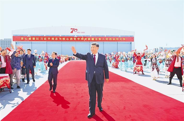 新华社乌鲁木齐9月25日电 中共中央总书记、国家主席、中央军委主席习近平在乌鲁木齐出席新疆维吾尔自治区成立70周年庆祝活动后,25日乘专机返回北京。受习近平总书记嘱托,以王沪宁为团长的中央代表团将于25日至28日在新疆各地看望慰问各族各界干部群众。