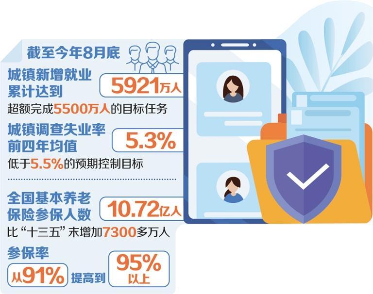 就业是最基本的民生。截至今年8月底,城镇新增就业累计达到5921万人,超额完成5500万人的目标任务。城镇调查失业率前四年均值为5.3%,低于5.5%的预期控制目标。在就业困难挑战比较大的时期,这一成绩来之不易。王晓萍表示,就业优先政策体系不断充实,形成了财政激励、税费减免、金融支持的系统性政策框架,构建了社保费阶段性减免、失业保险稳岗返还、就业创业补贴等全链条支持体系,政策工具更足、针对性更强。“十四五”时期,年均创业担保贷款余额3000亿元,年均支出就业补助资金超1000亿元。