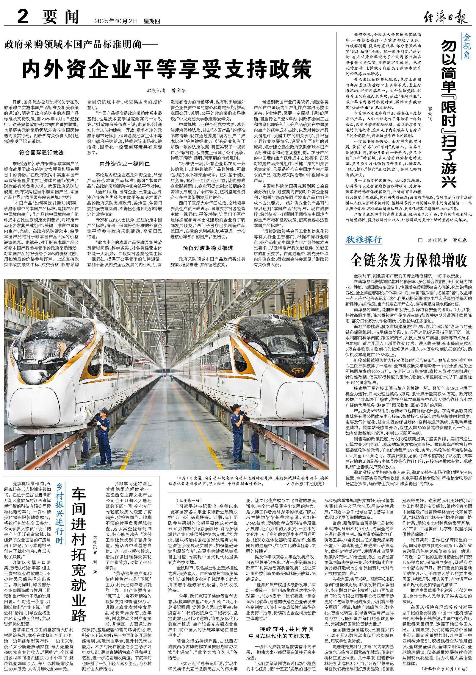 “今年,我们克服了洪涝等自然灾害,秋粮丰收在望。”孙大川说,“习近平总书记强调‘党领导人民自力更生、接续奋斗’,我们要按照总书记要求,坚定走农业现代化道路,将更多现代化的生产模式、生产设备充实到农业生产中,将中国人的饭碗牢牢端在自己手中。”