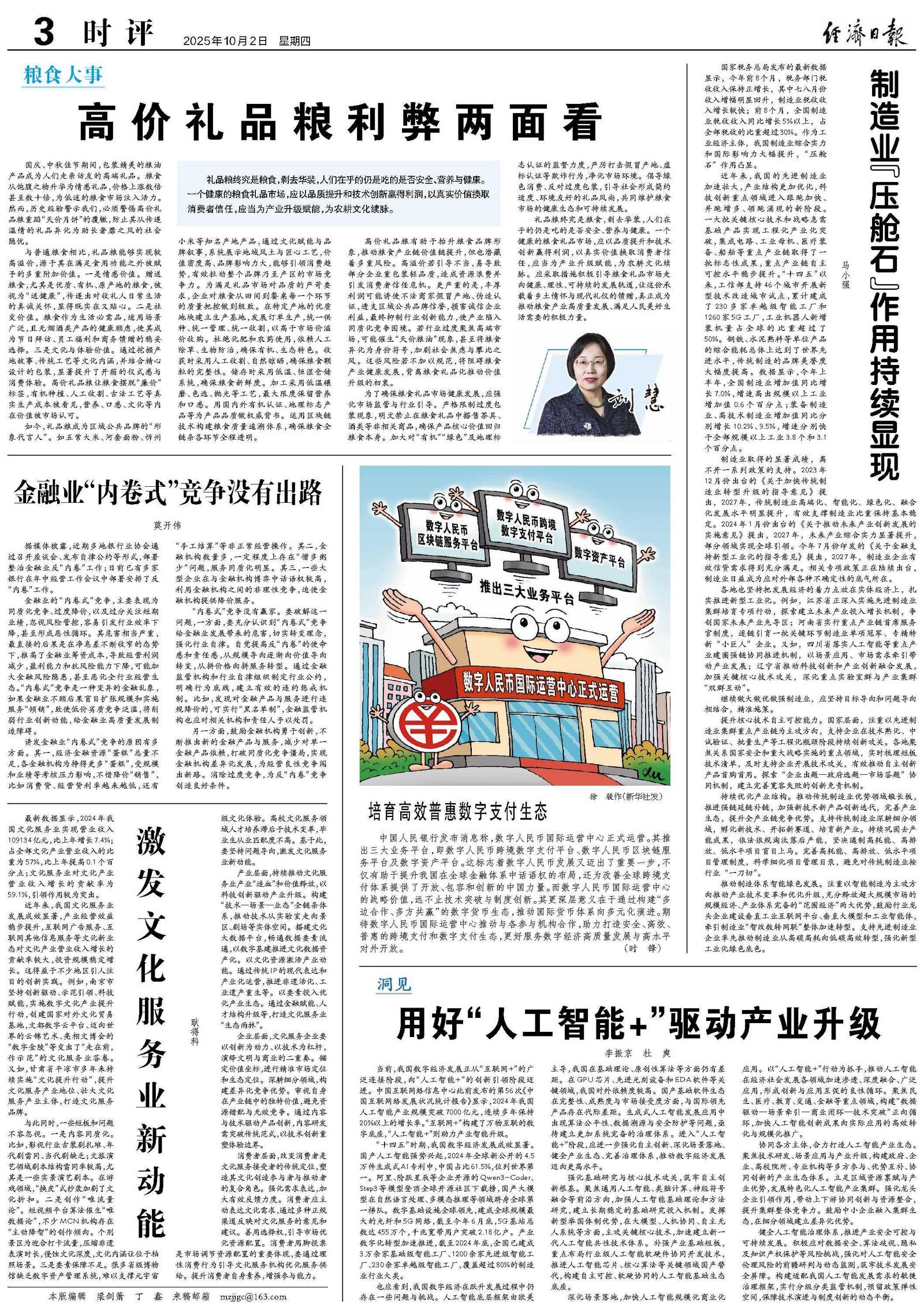 也应看到,我国数字经济在跃升发展过程中仍存在一些问题与挑战。人工智能底层框架由欧美主导,我国在基础理论、原创性算法等方面仍有差距。在GPU芯片、先进光刻设备和EDA软件等关键领域,我国对外依赖度较高。国产基础软件生态在完整性、成熟度与市场接受度方面,与国际领先产品存在代际差距。生成式人工智能发展应用中出现算法公平性、数据溯源与安全防护等问题,亟待建立更加系统完备的治理体系。进入“人工智能+”阶段,应进一步强化自主创新、深化场景落地、健全产业生态、完善治理体系,推动数字经济发展迈向更高水平。