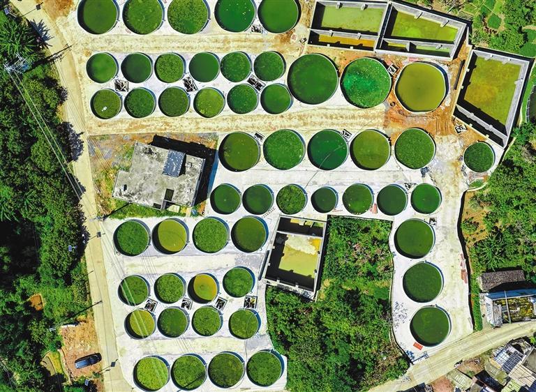 近日,在广西梧州市藤县和平镇木依村生态养鱼基地,陆基养鱼圆池整齐有序排列。近年来,梧州市重视保护珠江水系生态环境,整治江河网箱养殖,利用岸上陆基圆池循环水养鱼,推动现代渔业转型升级,促进农民增收。 颜桂海摄(中经视觉)