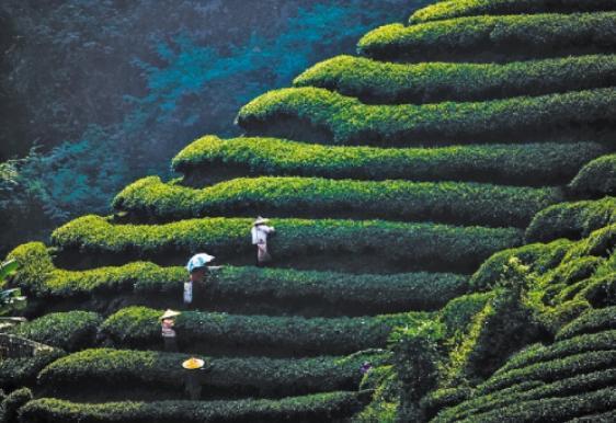 10月3日,茶农在广西贺州市昭平县高山生态茶园采摘秋茶。