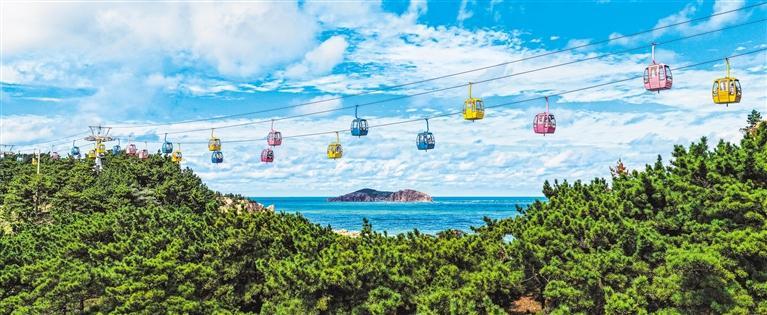 10月7日,山东省荣成市成山头风景区,游客乘坐跨海索道,观赏山海美景。李信君摄(中经视觉)