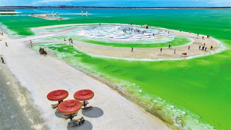 10月12日,青海省海西蒙古族藏族自治州,察尔汗盐湖景区美景如画,吸引各地游客慕名而来。 张红心摄(中经视觉)