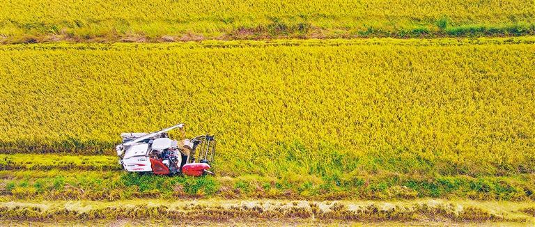 10月12日,安徽省安庆市岳西县温泉镇西营村,农机手驾驶收割机在收割水稻。近年来,岳西县充分利用资源禀赋,持续加大高山优良品种水稻的种植及管理力度,提升产品质量,促进农业增效、农民增收。吴均奇摄(中经视觉)