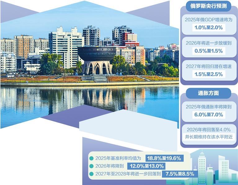在此背景下,俄央行预测,2025年俄GDP增速将为1.0%至2.0%,2026年将进一步放缓到0.5%至1.5%,2027年将回归潜在增速1.5%至2.5%。通胀方面,2025年俄通胀率将降到6.0%至7.0%,2026年将回落至4.0%,并长期维持在该水平附近。