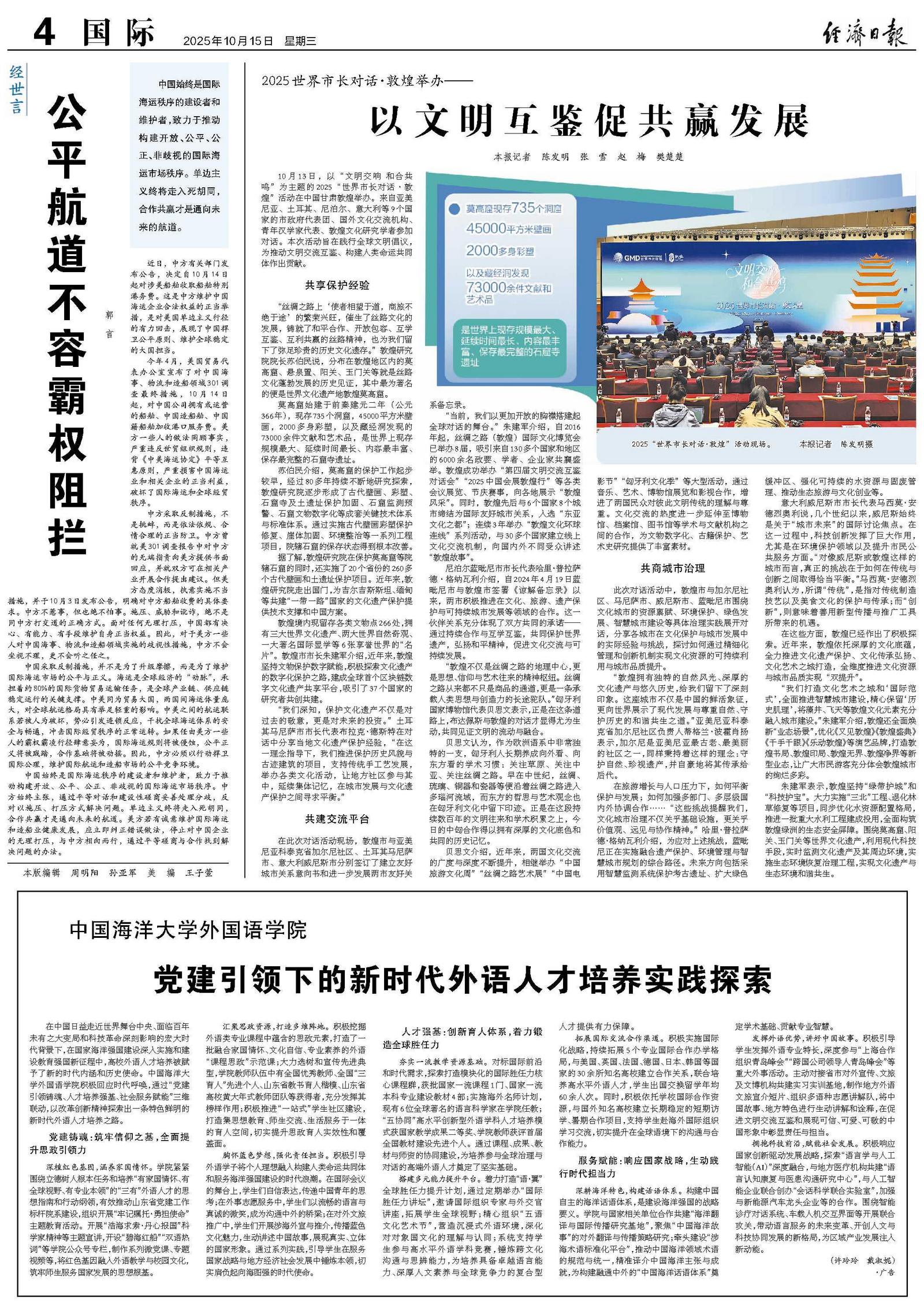 在中国日益走近世界舞台中央、面临百年未有之大变局和科技革命深刻影响的宏大时代背景下,在国家海洋强国建设深入实施和建设教育强国新征程中,高校外语人才培养被赋予了新的时代内涵和历史使命。中国海洋大学外国语学院积极回应时代呼唤,通过“党建引领铸魂、人才培养强基、社会服务赋能”三维联动,以改革创新精神探索出一条特色鲜明的新时代外语人才培养之路。