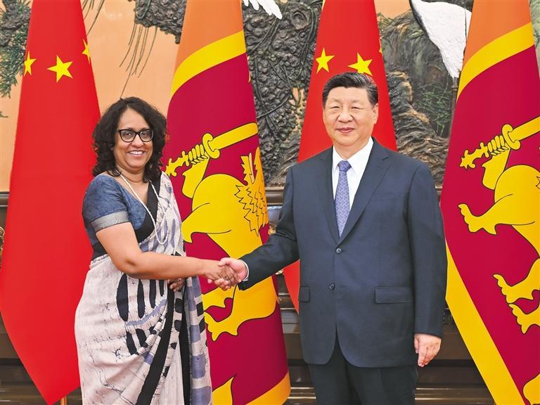 习近平指出,中国和斯里兰卡传统友谊源远流长,两国始终在和平共处五项原则基础上发展双边关系,树立了不同国家间友好相处、互利合作的典范。中斯两国是发展振兴的同路人、合作共赢的好伙伴。中方始终视斯里兰卡为周边外交重要方向,愿同斯方一道努力,赓续传统友谊,拓展互利合作,共同打造中斯命运共同体,更好造福两国人民。