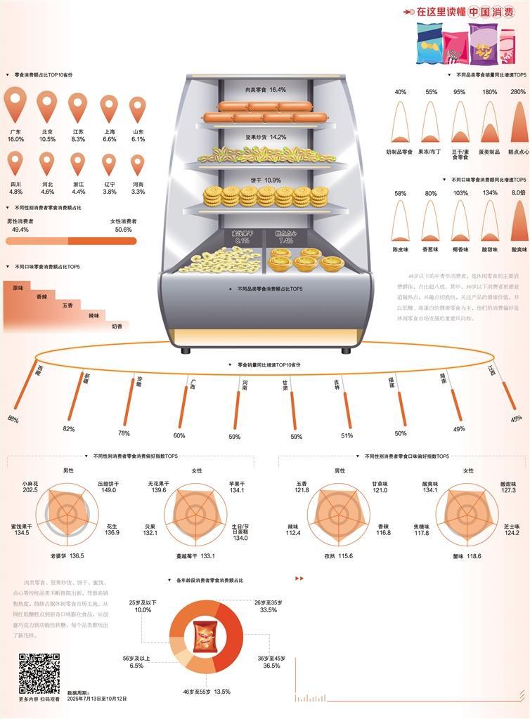 消费需求升级是休闲食品市场增长的核心引擎。如今的消费者早已不满足于“解馋”,而是追求健康、尝新和情绪价值的三重满足。消费者对营养和健康的关注度不断提升,低糖、低卡、添加少成为基本要求,推动休闲食品行业从传统的高热量产品向减肥、控糖、助消化等功能性和健康导向的产品转型。年轻消费者热衷尝新,使得不同食材或口味创新组合的“跨界”零食快速走红,休闲零食的品类边界不断拓宽。此外,休闲零食既是解压神器也是怀旧载体,无论是“复活”经典产品引发情感共鸣,还是通过味蕾享受带来放松和即时愉悦,都让零食消费拥有了穿越经济周期的韧性。