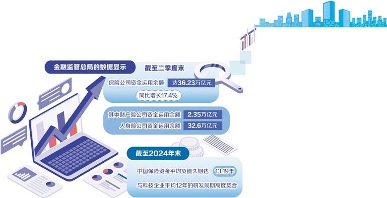 国家金融监督管理总局的数据显示,截至2025年二季度末,我国保险公司资金运用余额达36.23万亿元。在推动科技创新、加速形成新质生产力的战略指引下,来自保险行业的耐心资本正成为支持关键核心技术突破和战略性新兴产业发展的重要力量。保险资金凭借其规模大、期限长、来源稳定的独特优势,积极践行长期投资、价值投资理念,为科技创新注入源源不断的金融活水。